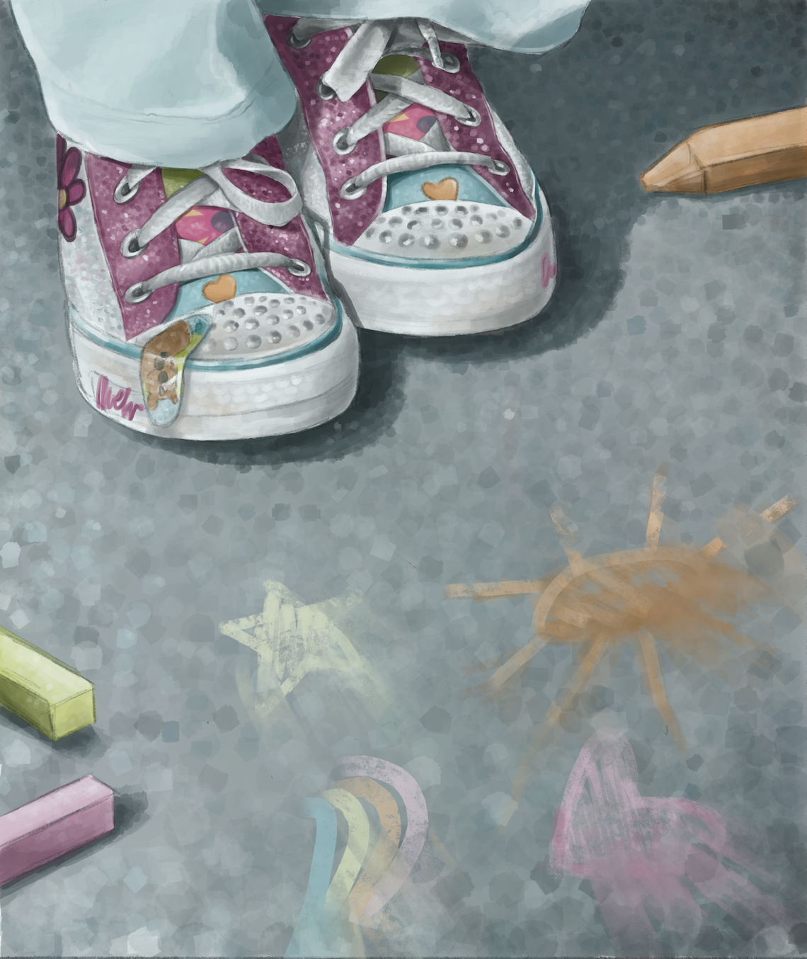 This assignment was a project created for a Color Theory course at Las Positas Community College. The prompt was to create an artwork based off of a song, and I chose "Scott Street" by Pheobe Bridgers. To me, this song perfectly encapsulates the feeling of nostalgia, and yearning for a childhood that has been washed away. Additionally, the song talks about the feeling of realizing that you have grown up and moved on from your past, which is a feeling I have been experiencing a lot lately. I created this piece digitally on ProCreate, using a stippling technique to achieve the realistic and textured effect. This assignment was extremeley comforting to me, because it allowed me to both explore my own emotions and create using a medium I love.
